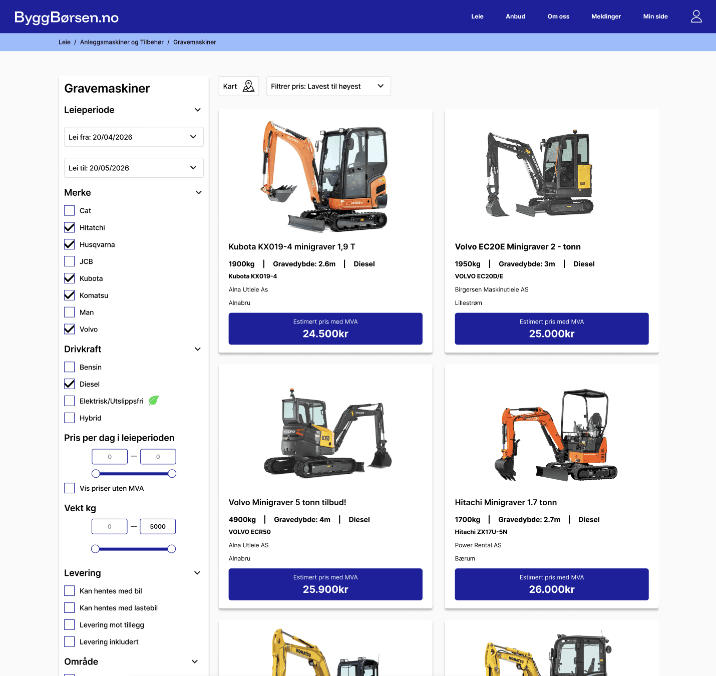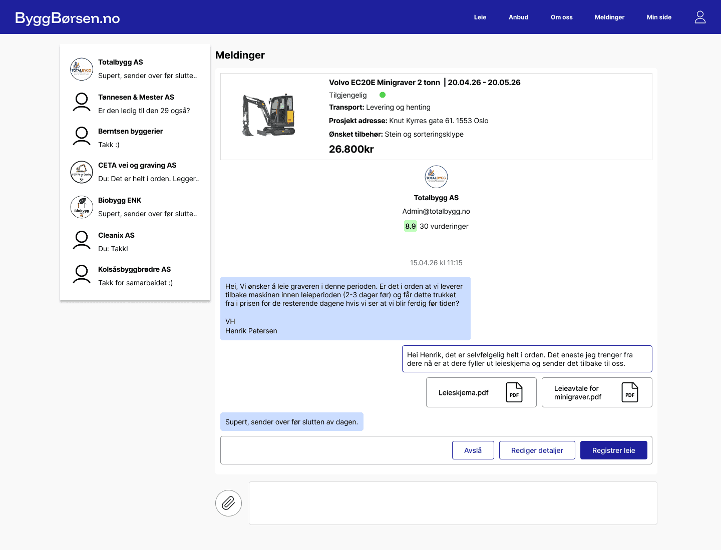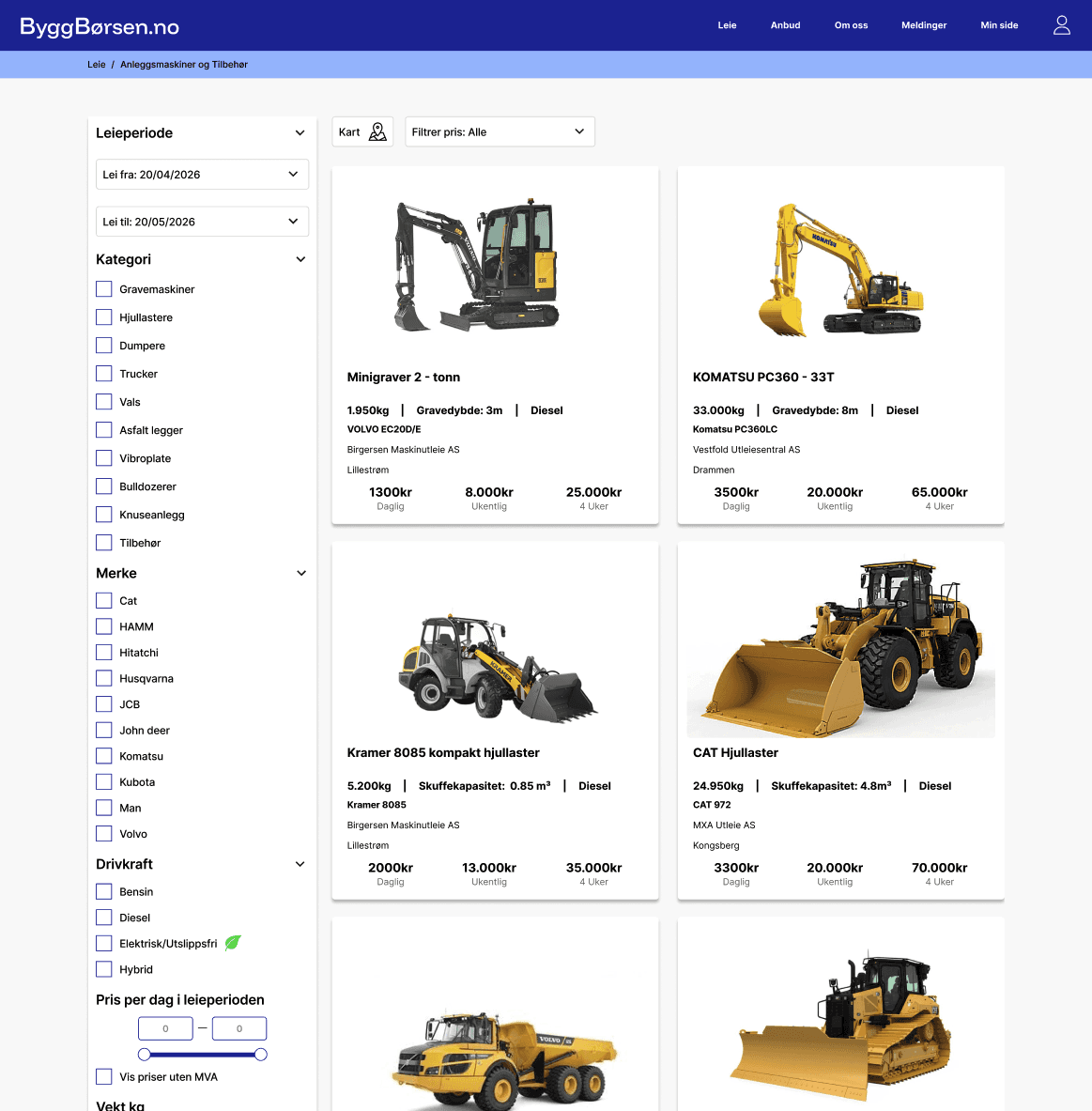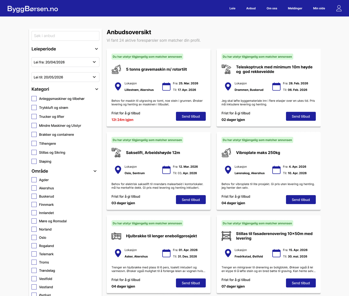 Svar på anbud fra leietakere som aktivt søker utstyr, og få nye leieavtaler uten ekstra salgsarbeid.